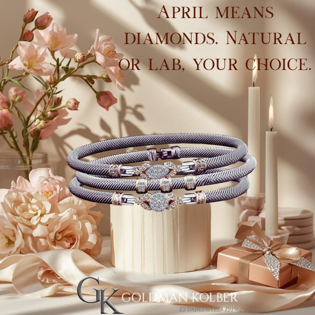Born in April? Lucky you. Diamond season is here, in natural or lab. #weLOVEGKjewelry