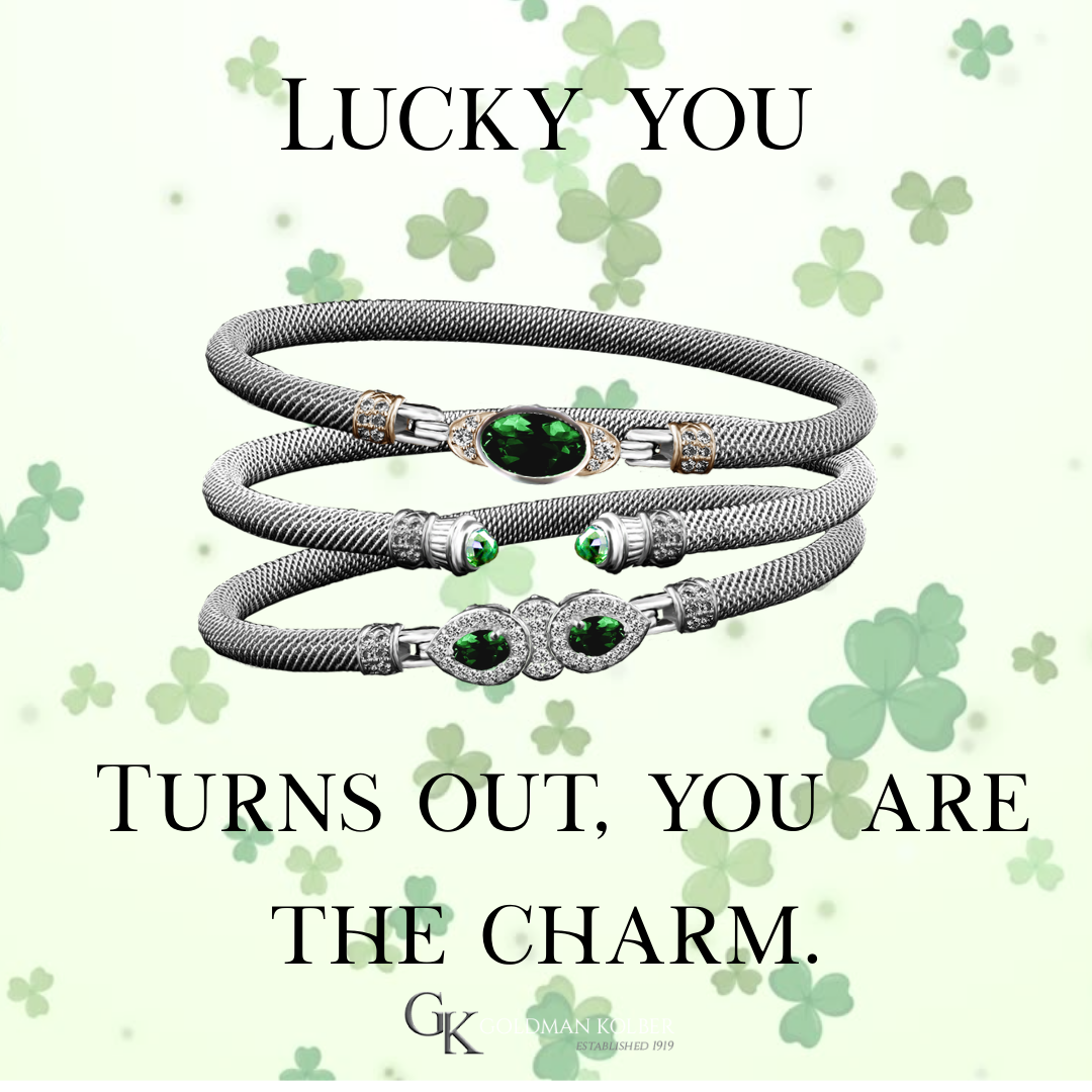 Lucky you. Emerald is your power color. #LuckyYou #weLOVEGKjewelry